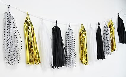Black White Gold Birthday Decorations12pcs Gold White Black And Black Polka Dot Tissue Paper Tassel Garland Bridal Shower Baby Shower Decorations
