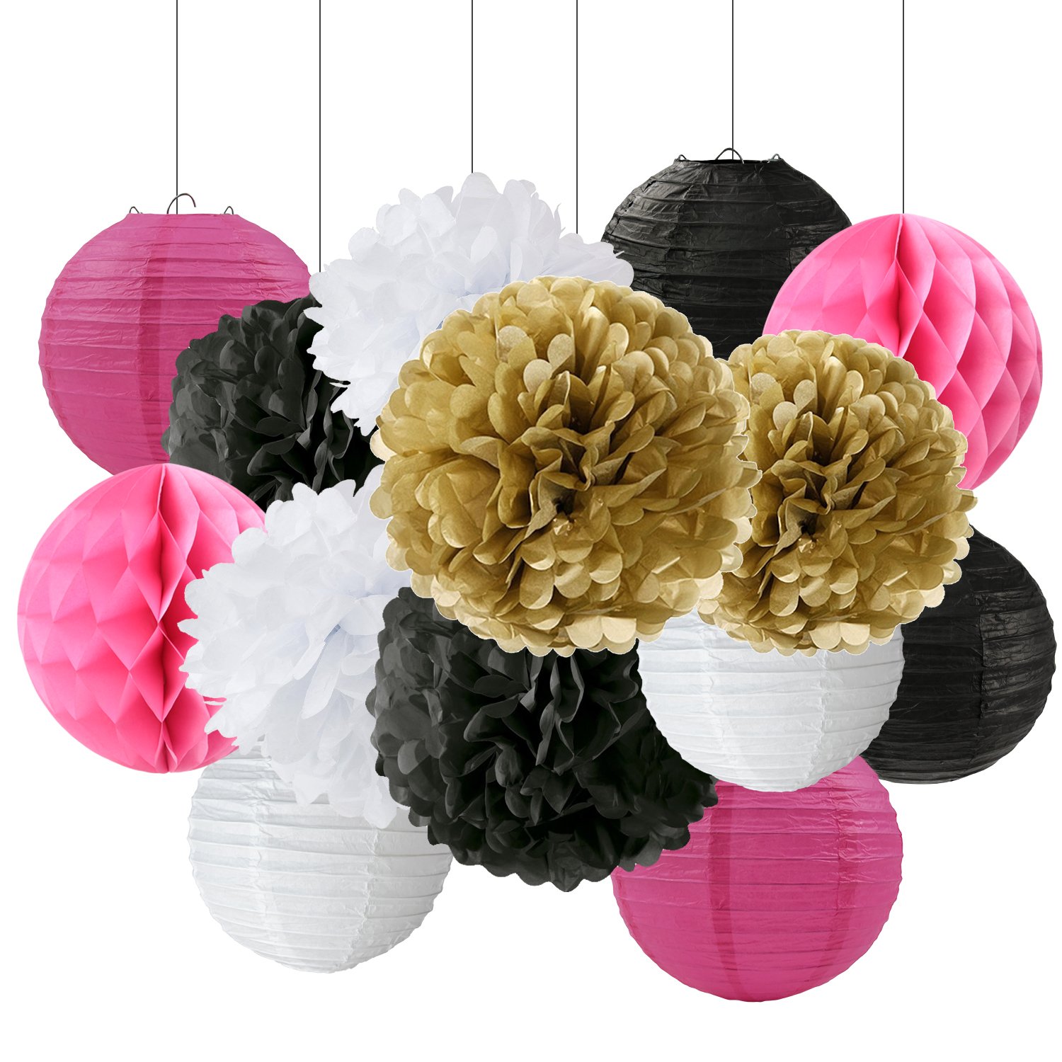 Wcaro Wedding Decorations Rose Red Gold Black White 8inch 10inch Tissue Paper Pom Pom Paper Flowers Paper Honeycomb Paper Lanterns Bridal Shower Decor