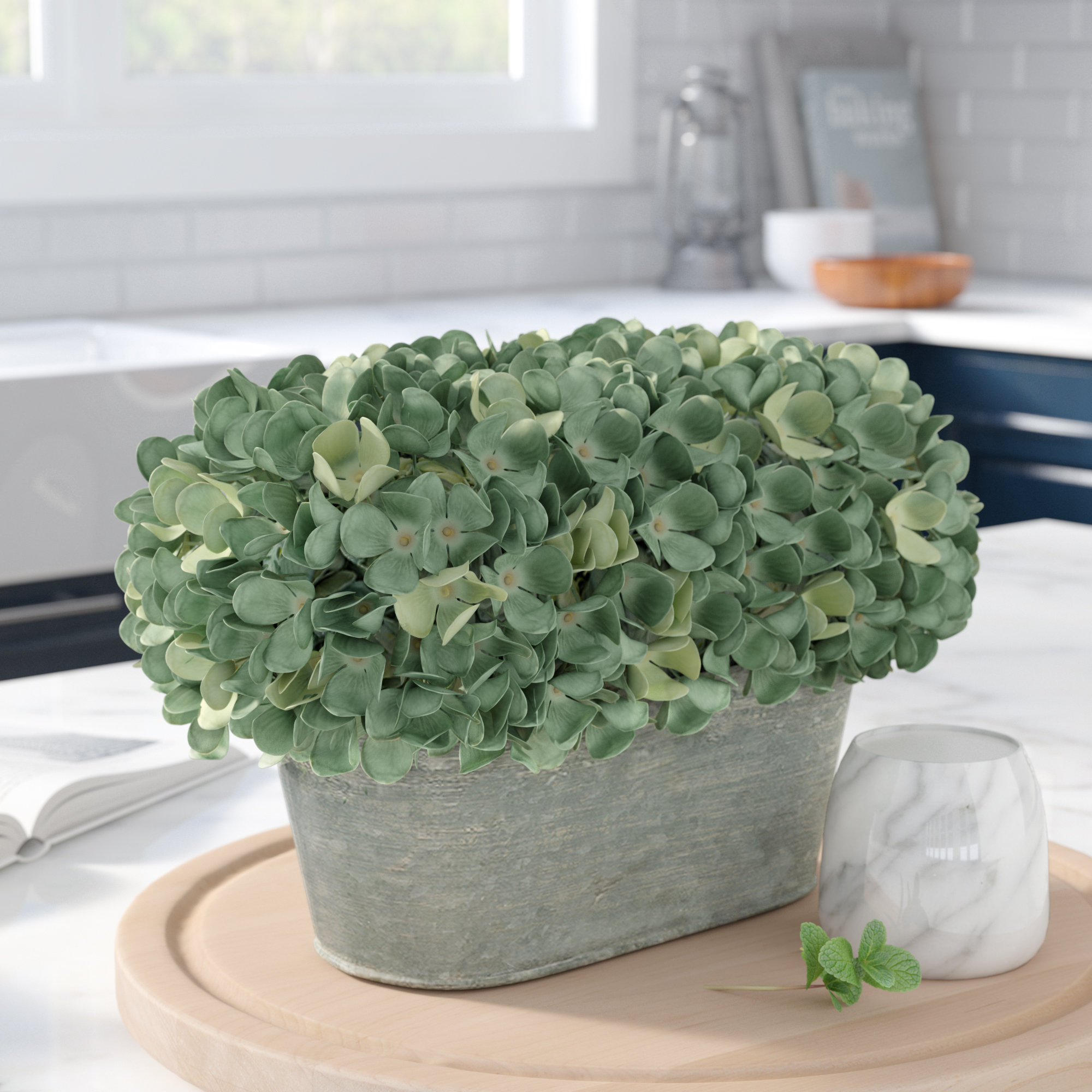 Hydrangea centerpiece. White can lend itself to weddings showers nautical themes summer soirees and more. This small vase holds a bouquet of green hydrangeas. Blooming paradise artificial silk hydrangea bouquet fake flowers arrangement home wedding decor1 bunch of 5 flowers fake floral centerpieces arrangements diy light blue 1199 11.