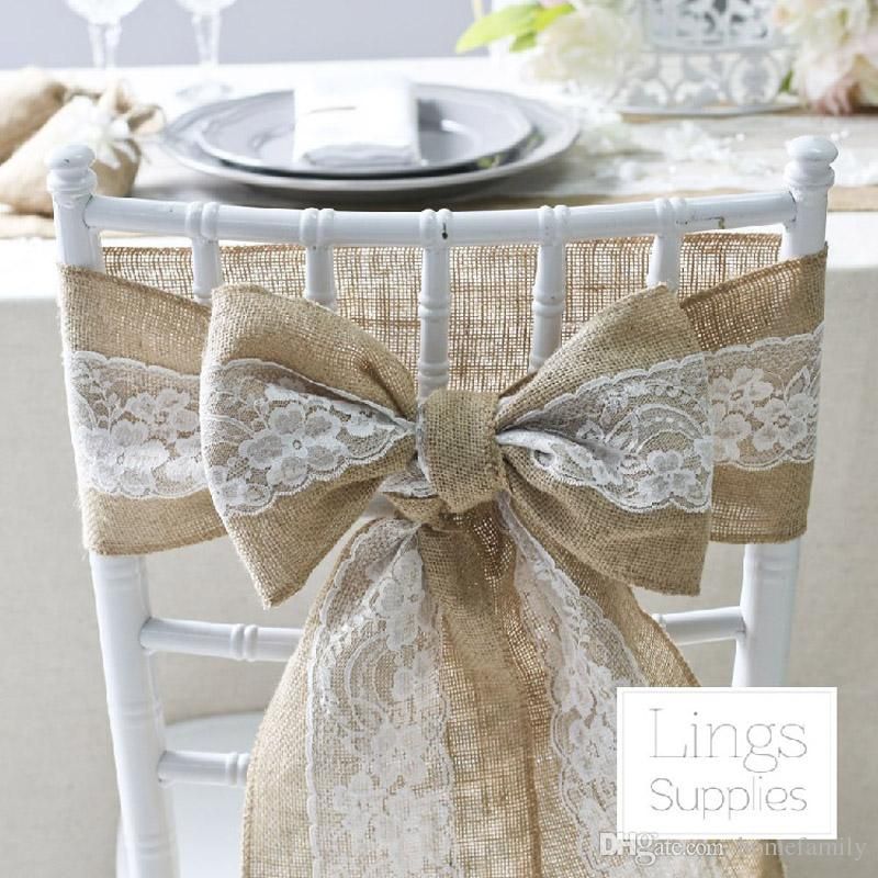 Vintage Chair Sashes Flax Lace Chair Sashes For Wedding Banquet Brief Chair Cover Wedding Decoration Classic Yellow Sashes Bows