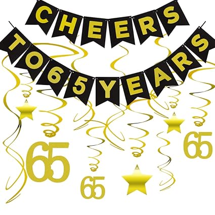 65th Birthday Party Decorations Kit Cheers To 65 Years Banner Sparkling Celebration 65 Hanging Swirls Perfect 65 Years Old Party Supplies 65th