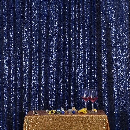 Eternal Beauty Navy Blue Sequin Wedding Backdrop Photography Background Party Curtain 6ft X 6ft