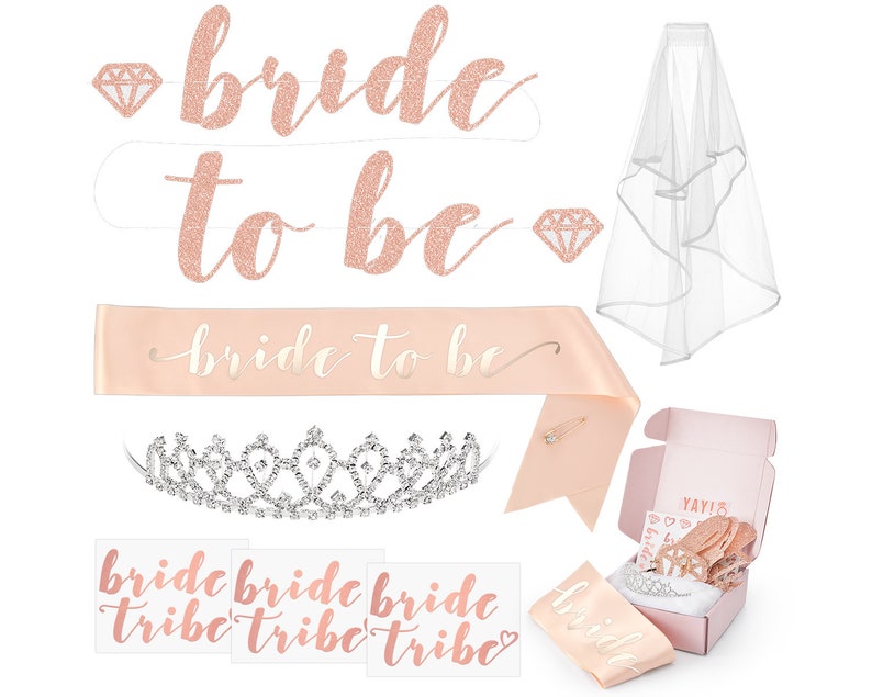 Bachelorette Party Decorations Kit Rose Gold Bridal Shower Decorations Bachelorette Party Favor Bachelorette Sash Veil Hen Party