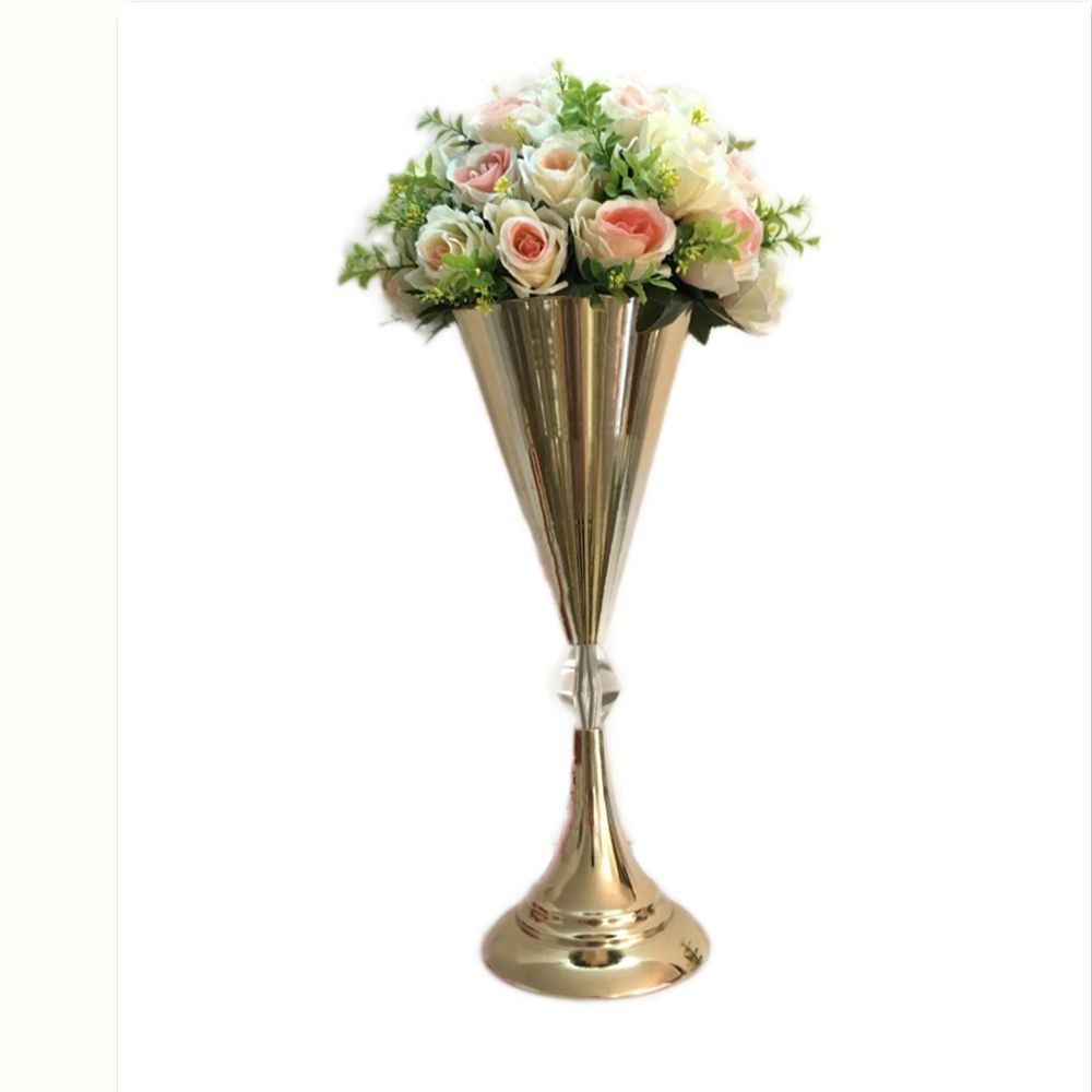 10pcs Lot Gold Vase 48cm 18 9 Flower Vases Brief Wedding Table Centerpiece Event Table Road Lead Flower Rack For Home Decor