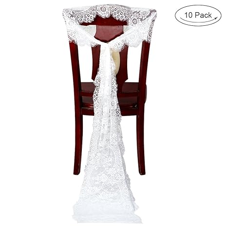 Partytalk 10pcs White Lace Chair Sashes For Wedding 14 X 118in Fringe Edge Chair Bands With Floral Pattern For Banquet Birthday Party Reception
