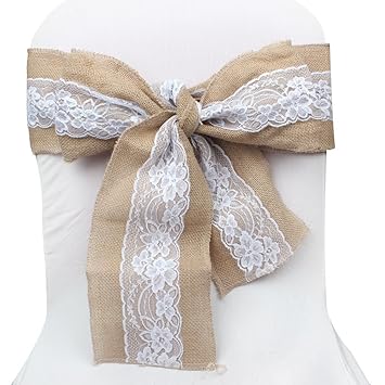 Aerwo 12pcs Lot Burlap Lace Chair Sashes Bows Party Decoration For Rustic Wedding Centerpieces And Bridal Showers Diy Crafts 5 9 By 108 Inch