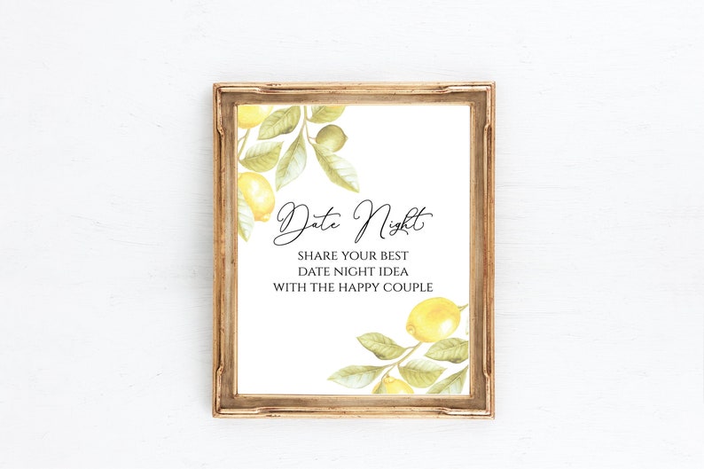 Lemon Bridal Shower Date Night Ideas Game Printable Bridal Shower Sign Date Night Bridal Shower Game E243 Lemon Bridal Shower Decor