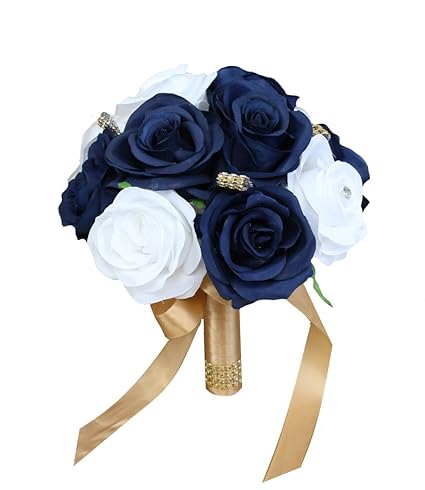 Angel Isabella Build Your Wedding Package Artificial Flower Bouquet Corsage Boutonniere Rose Calla Lily Navy Gold Wedding Theme 9 Bouquet