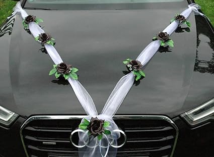 Autoschmuck Organza M Garland With Roses For Bride And Groom Wedding Car Decoration Black White