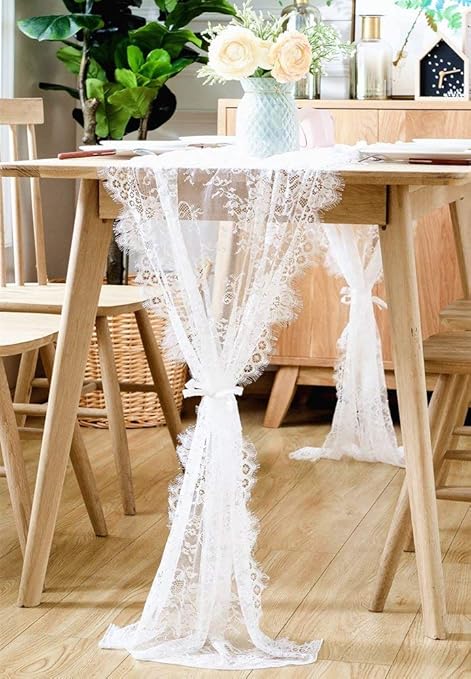 Boxan 30x120 Inch White Classy Lace Table Runner Overlay With Rose Vintage Embroidered Rustic Boho Wedding Reception Table Decor Fall Thanksgiving