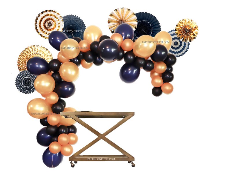 58 Piece Set Navy Gold Engagement Party Decorations Balloon Garland Paper Fans Baby Shower Decorations Navy Balloons Gold