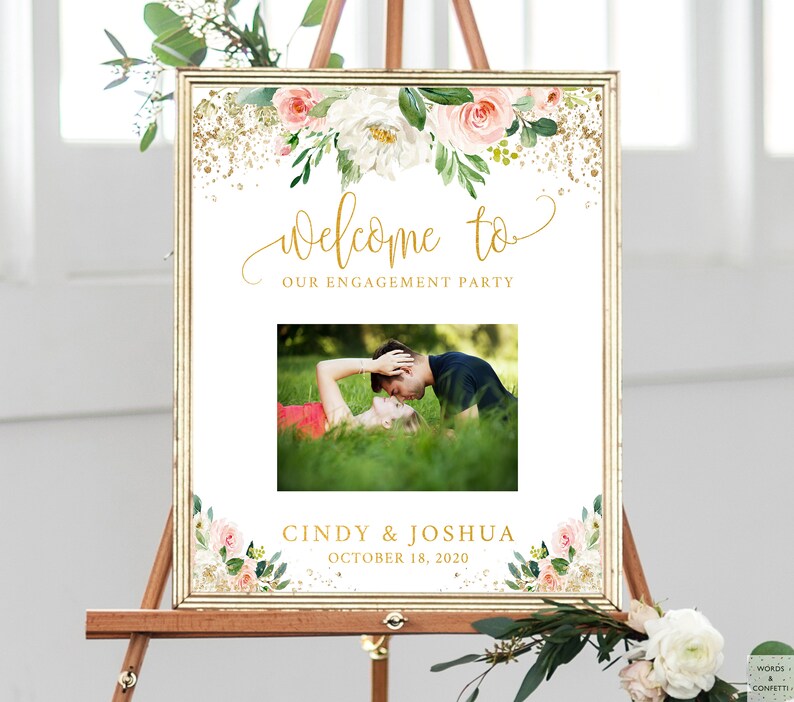 Engagement Party Decorations Gold Engagement Sign Board Photo Welcome Sign Wedding Personalized With Names Engagement Party Banner