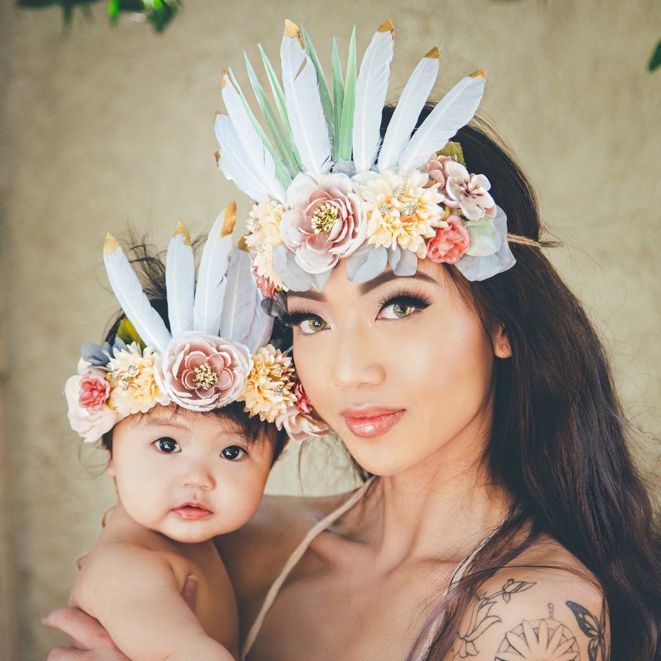 Designer Feather Flower Headband Hair Wreath Wedding Hair Accessories Boho Flower Bridal Wedding Wreaths For Mother And Daughter Head Pieces