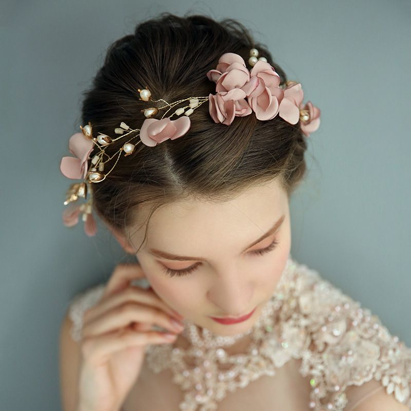 Handmade Pink Flower Hair Wreath For Wedding Prom Pearls Bridal Headband Hair Accessories Jewelry Women Headpiece