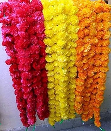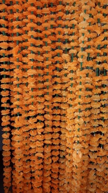 Craffair Artificial Marigold Flower Strings Orange Color Party Backdrop Party Decoration Indian Theme Party Decor Photo Prop Wedding Decorations