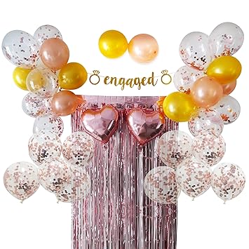 Engagement Party Decorations Set Includes Confetti Balloons Engaged Banner Rose Gold And