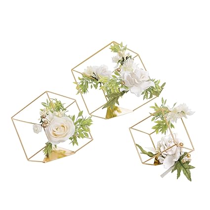 Ling S Moment Set Of 3 Gold Geometric Wedding Centerpieces Ornaments Ivory Rose Flower Table Centerpieces For Wedding Party Decor