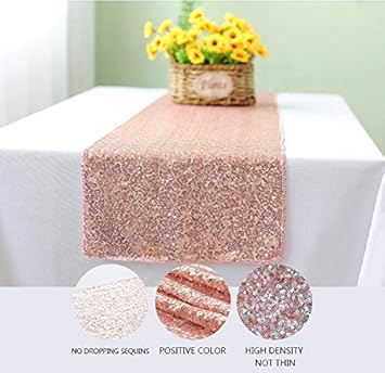 Bluetop Sequin Wedding Table Runners Rose Gold 12 X 72 Inch Glitter Party Table Runner Shiny Sparkling Dining Table Cloth For Ceremony Prom Banquet