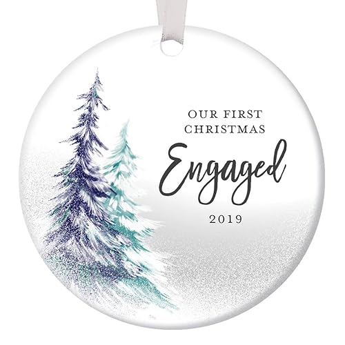 1st Christmas Engaged Ornament 2019 Engagement Party Gifts For Couple First Xmas As Fiance Fiancee Man Woman Gay Present Idea Ceramic Keepsake 3
