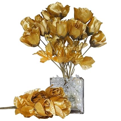 Balsacircle 252 Gold Silk Rose Buds 36 Bushes Artificial Flowers Wedding Party Centerpieces Arrangements Bouquets Supplies