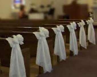 Set of 14 white tulle and white satin finished bows. Large voluminous bows can create bold decor for the church and reflect your wedding colors especially well. Great for decorating church pews reception halls chairs tables rails arches signs and more.