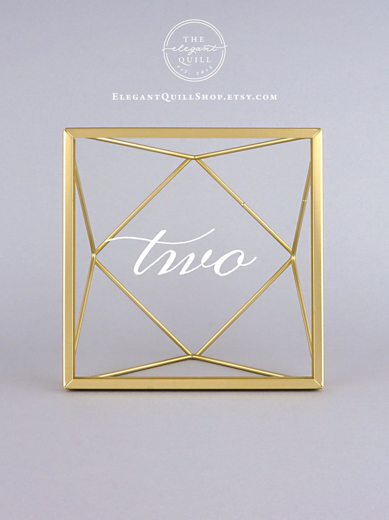 Glass Table Numbers Modern Wedding Decor Wedding Calligraphy Gold Table Numbers Geometric Wedding Table Numbers Wedding Table Decor