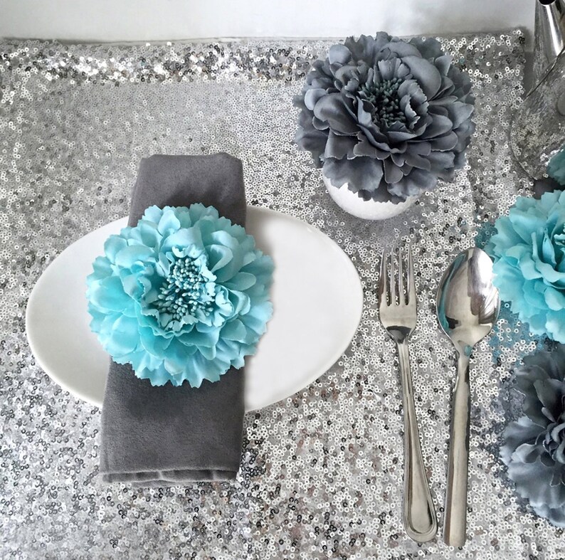 Turquoise And Grey Large Artificial Peonies Floral Napkin Rings Flower Napkin Holders Aqua Blue Gray Wedding Decor Bridal Shower Decor