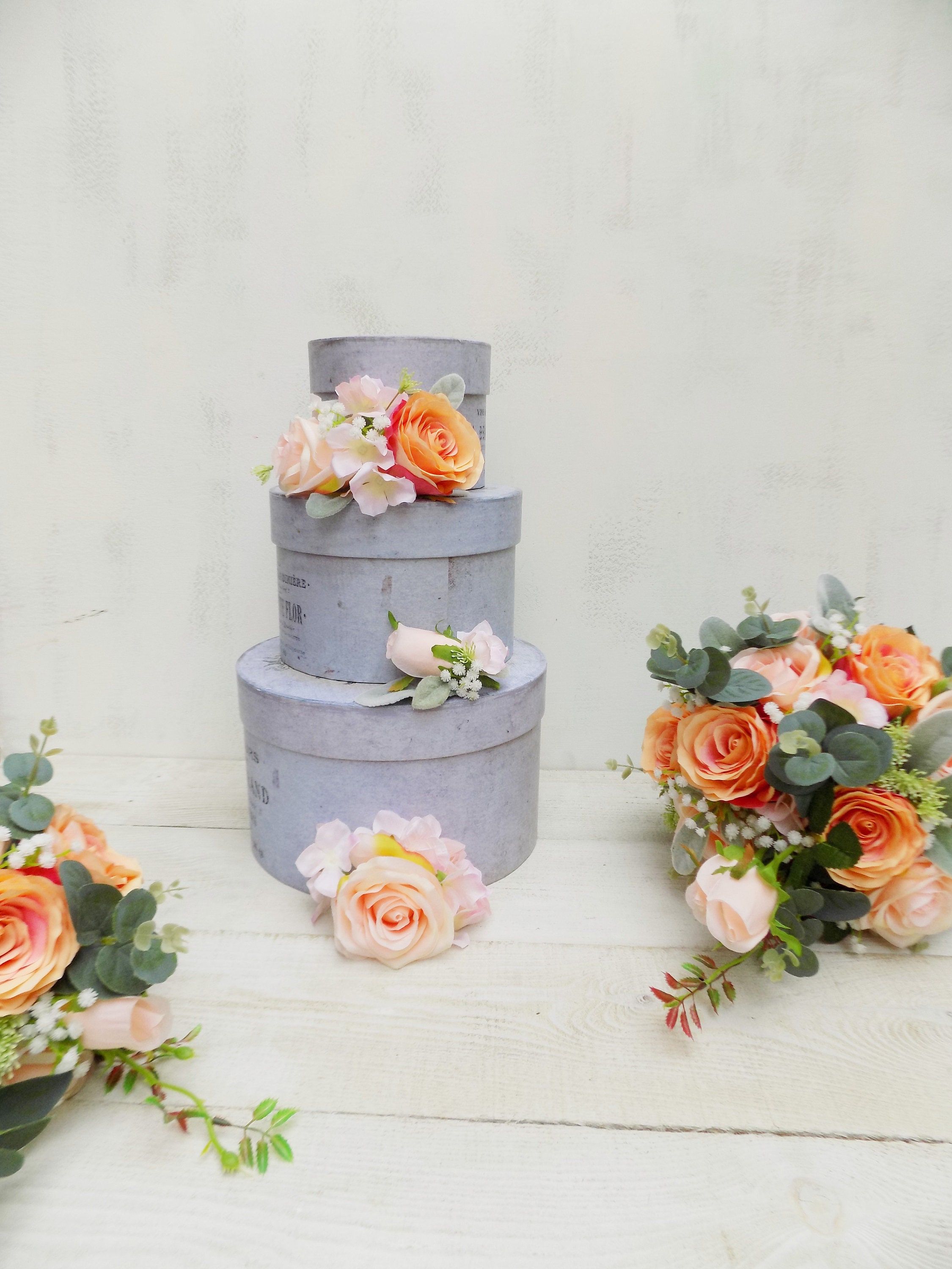 Wedding Flower Peach Cake Topper Wedding Cake Decoration Artificial Silk Flowers Rustic Decor Floral Cake Toppers Peach Rose