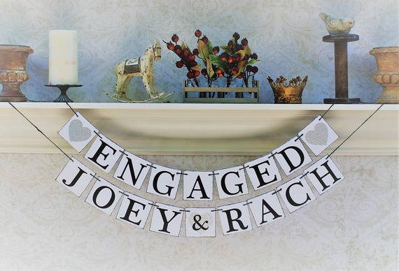 Engaged Signs Custom Name Banners Engagement Party Decor Black And Silver Decorations