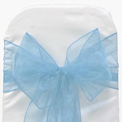 Mds 100 Pcs Organza Chair Sashes Bows Sash For Wedding Or Events Banquet Decor Chair Bow Sash Baby Blue