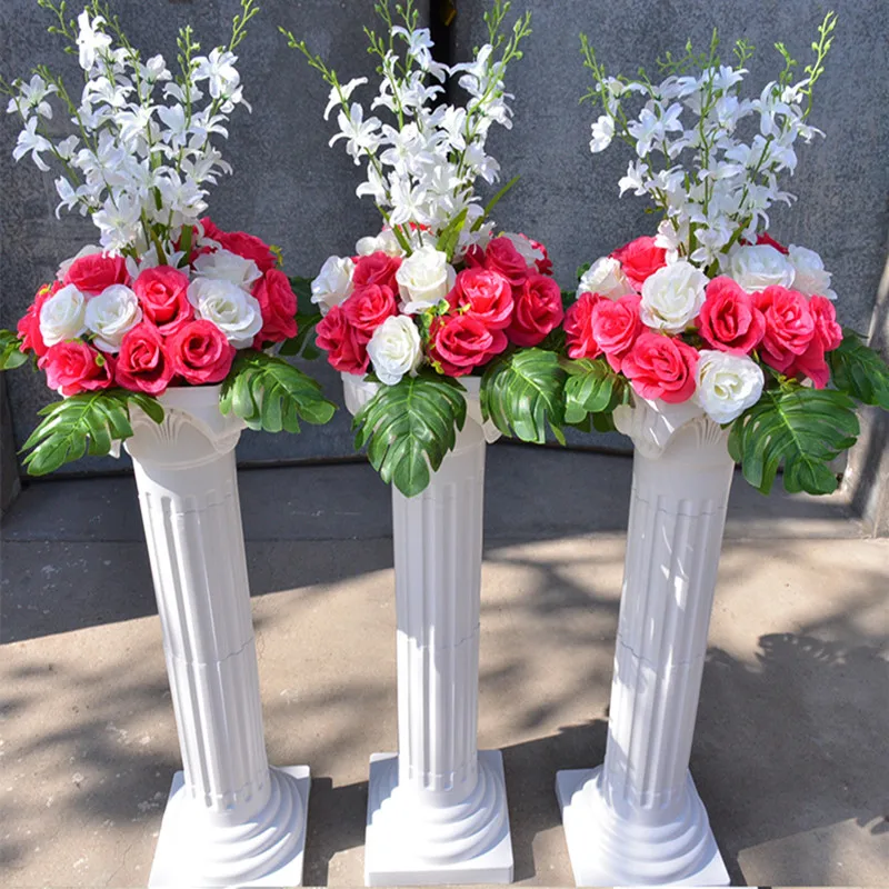 Us 233 0 Free Shipping White Roman Column With Artificial Rose Flower Sets Wedding Aisle Runner Stage Decoration Pillars Props Supplies In Party Diy