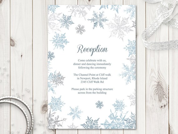 Winter Wedding Reception Card Template Snowflakes Silver Blue Diy Christmas Printable Template Editable Text Ms Word Instant Download