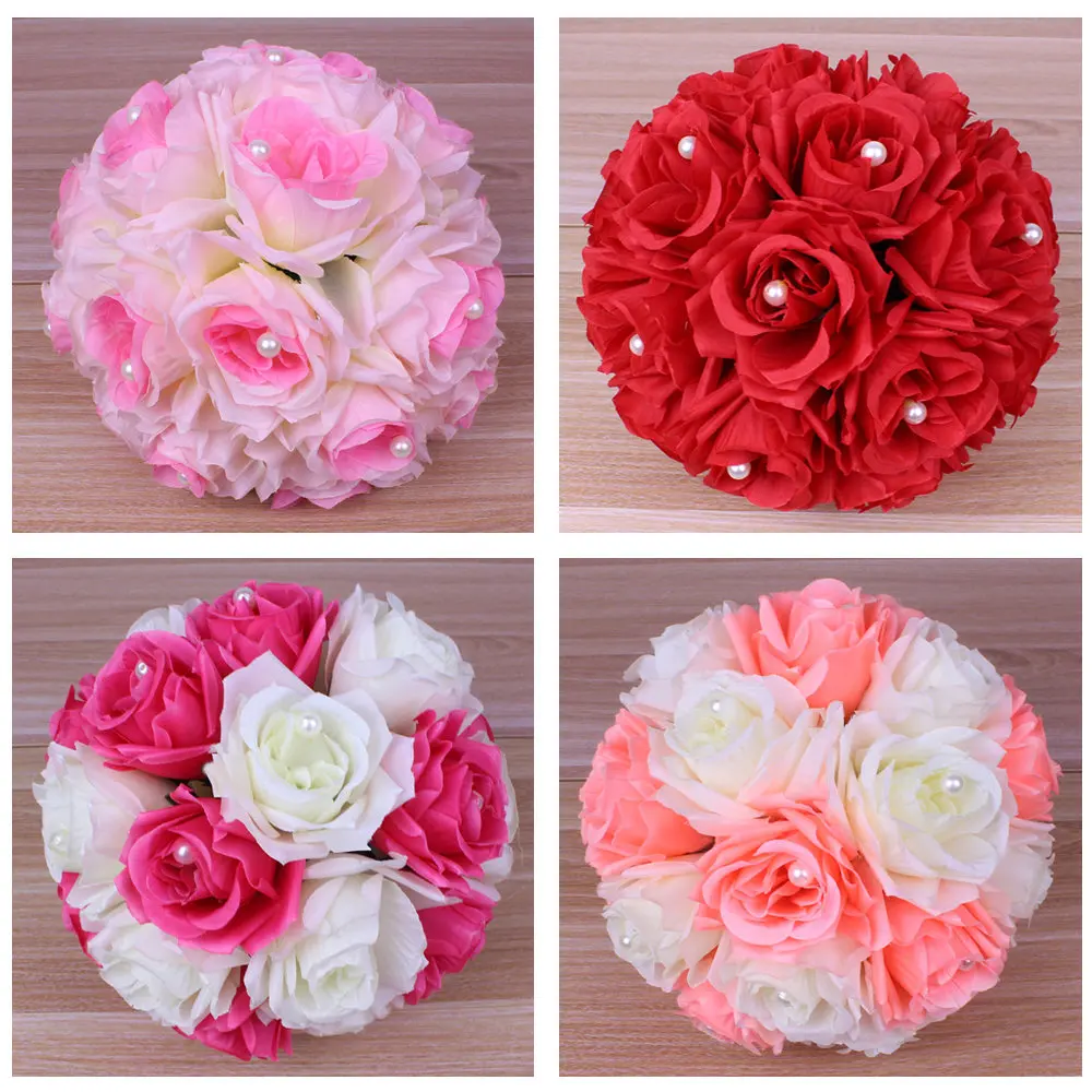Us 7 5 16 Off New 20cm Handmade Artificial Flower Ball With Pearl Bead Diy Party Wedding Flowers Bouquets Flower Ball Centerpiece Party Decor In