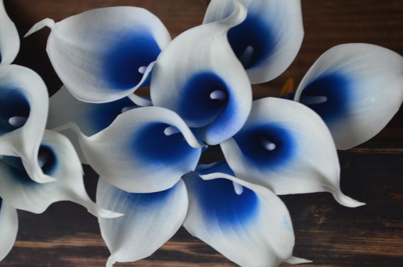 10 Dark Royal Blue Calla Lilies Real Touch Flowers Diy Silk Wedding Bouquets Centerpieces Wedding Decorations