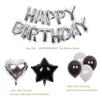 Silver Happy Birthday Alphabet Balloon Banner For Birthday Party Decoration Black And Silver Brilliant Foil