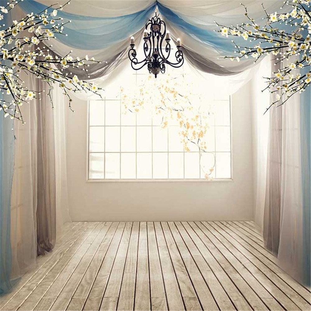 10x10ft Sunshine Lattice Window White Flowers Romantic Wedding Photo Backdrops Curtain Drape Custom Photography Studio Background Wood Floor