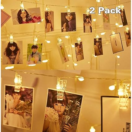 Led Photo Clip String Lights Battery Powered Perfect Room Decoration Christmas Halloween Party Photo Holder With 10 Clips 2 Pack