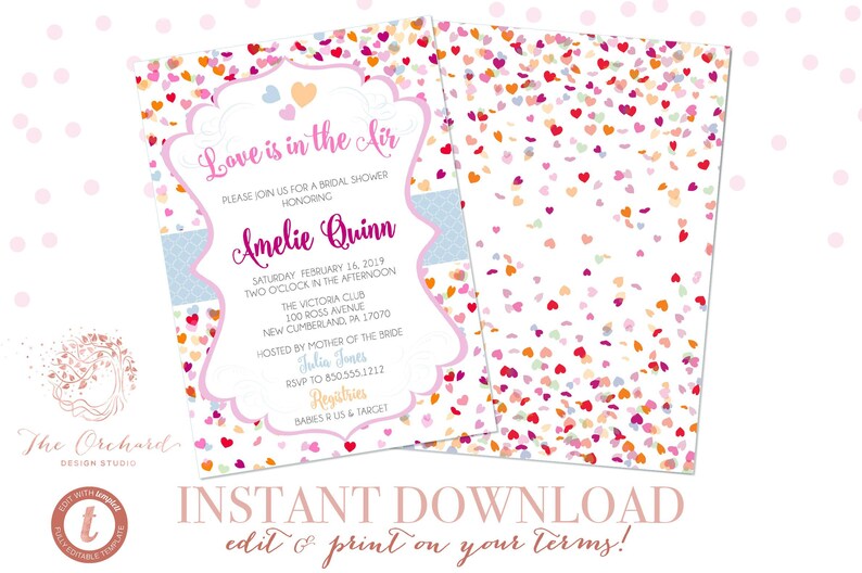 Valentines Bridal Shower Invitation Hearts Themed Wedding Bride To Be Hearts Modern Valentines Party Hearts Bridal Luncheon And Tea