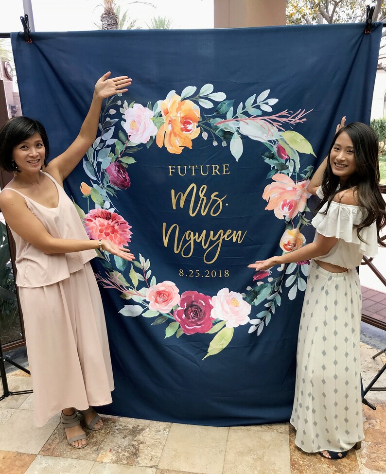 Navy Bridal Shower Decorations Boho Bridal Shower Backdrop Future Mrs Backdrop Custom Backdrop Navy Blue Bridal Shower Banner Floral