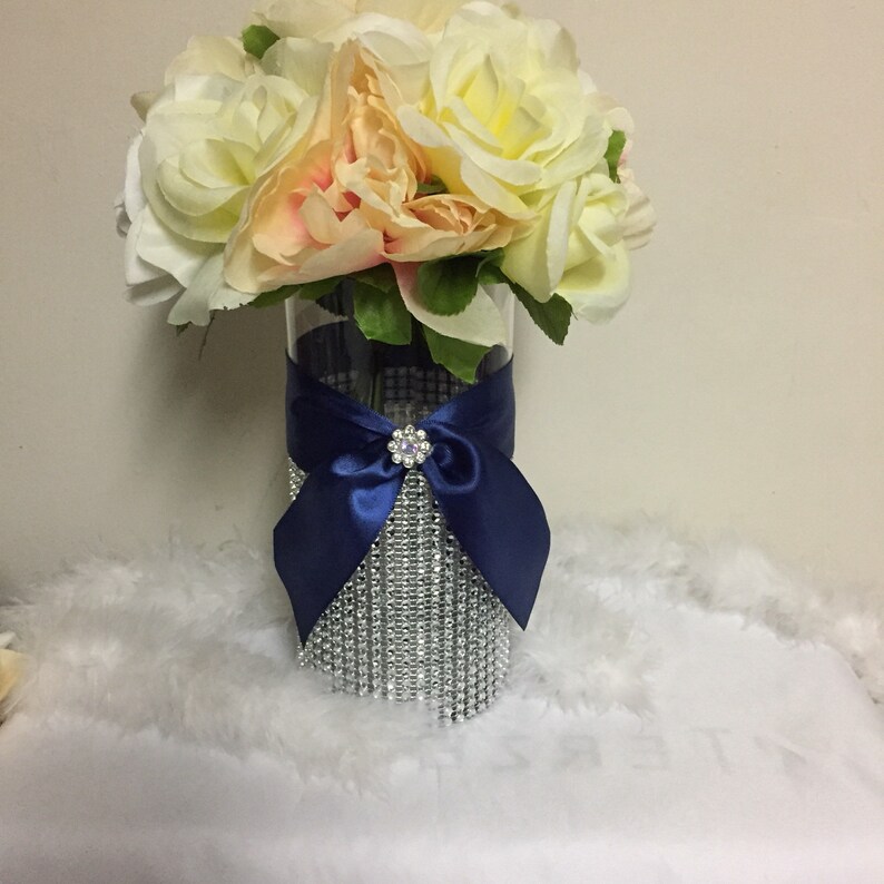 Navy Blue Wedding Centerpiece Vase With Rhinestone Bling Vase Centerpiece Table Decor Wedding Centerpiece Bling Wedding Navy Blue