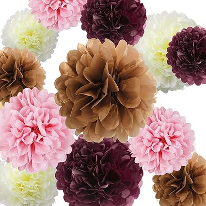 Fascola 12pcs Bachelorette Party Decorations Burgundy Rose Gold Blush Pink Ivory Tissue Paper Flowers Wedding Bridal Shower Maroon Party Decorations