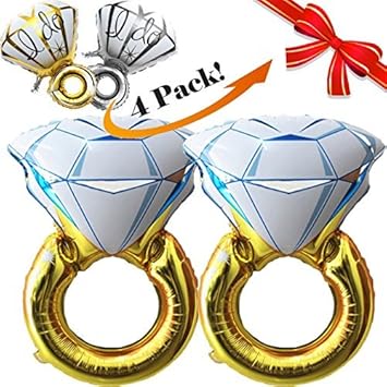 1 giant foil diamond ring balloon measures 32h x 21 deflated 255h x 18w when fully inflated helium quality and self sealing for easy inflation looks great in a photo booth backdrop or a balloon bouquet great for an engagement party or bridal shower combine with other bridal shower supplies. Concepts 1 11 set of 2 giant 45 diamond engagement ring mylar balloons for proposal vow renewal valentines day bridal shower wedding bachelorette parties decorati regular 2 gold white. Giant rose gold engagement ring balloon product details.