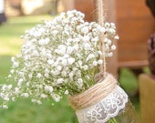 Items similar to hanging mason jars mason jar decorated rustic wedding decor wedding aisle aisle decor garden wedding decor wedding decor set of 6 on etsy may 2019 6 hanging mason jars decorated with lace and jute twine for weddings parties or home decorations.