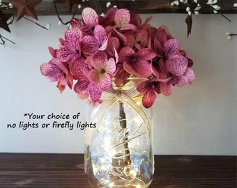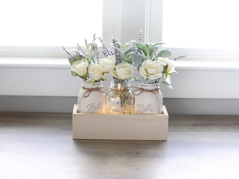 Table Centerpiece Mason Jar Centerpiece With Lights Painted Mason Jars Floral Centerpiece Rustic Kitchen Decor Entryway Table Decor
