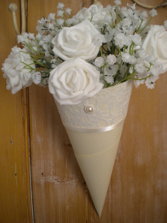 Church Wedding Pew Ends Handmade With Lace And Ribbon Pearl Or Diamante Ivory Or White Vintage Pew Ends Wedding Decortations