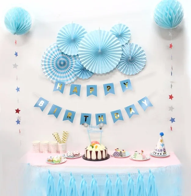 Us 9 51 11 Off Happy Birthday Party Decorations Kids Girl Pompoms Birthday Flag Banner Hanging Swirls Table Centerpiece Supplies Accessories In
