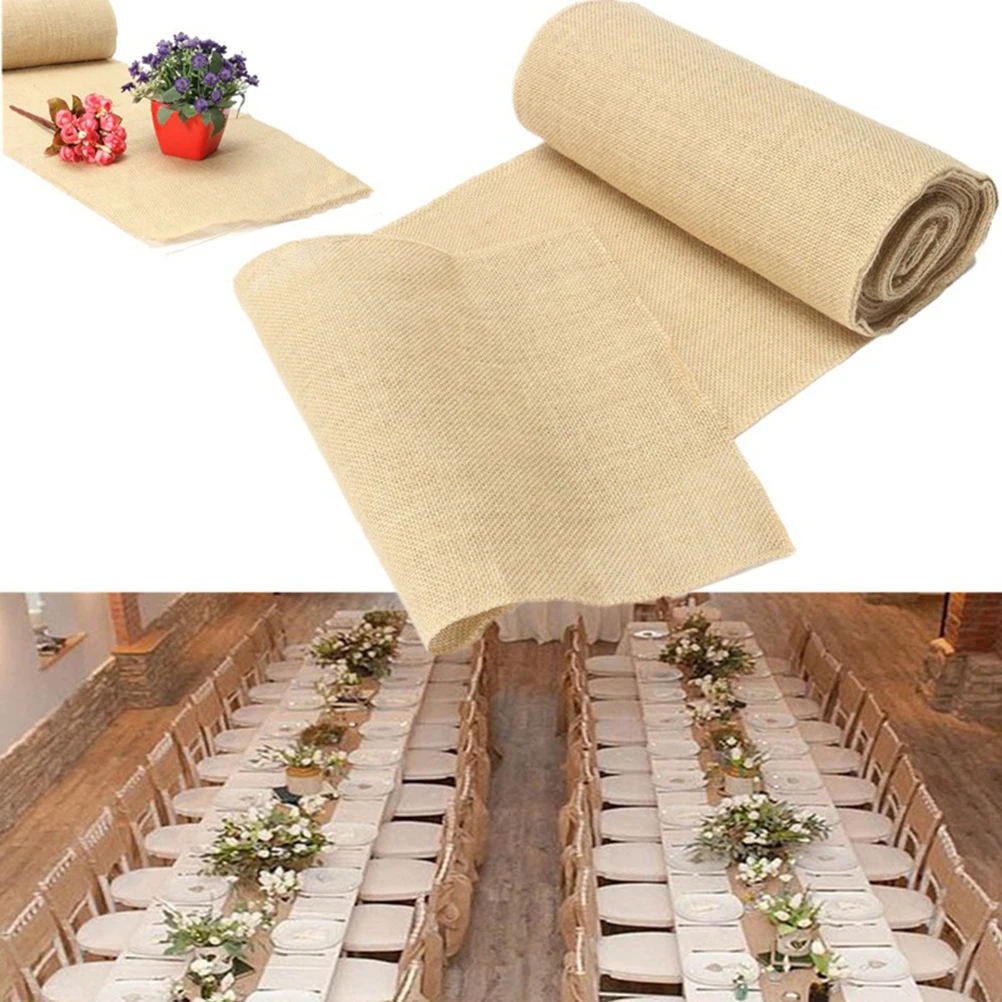 Us 7 37 18 Off 30x275cm Burlap Table Runner Cloth Wedding Decoration Natural Jute Linen Diy Chair Sashes Decor Rustic Home Party Supplies In Party