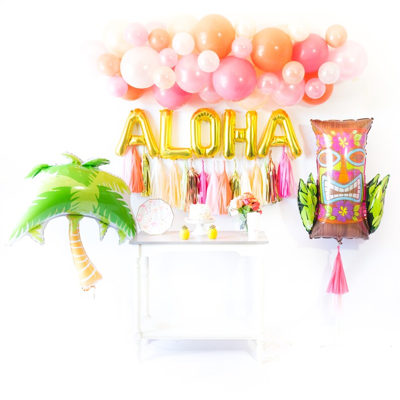 Aloha Tiki Balloon Tassel Party Box Flamingo Bridal Shower Decor Party Pineapple Bachelorette Tropical Aloha Birthday Beach Luau
