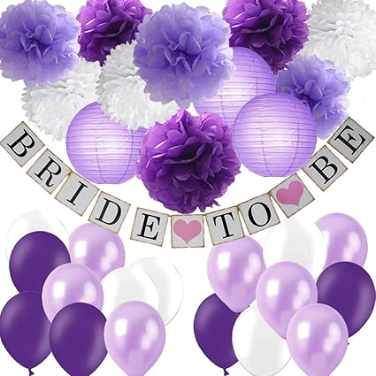 Purple Bridal Shower Decorations Kit Bride To Be Banner White Lavender Purple Tissue Flower Pom Poms Paper Lanterns Latex Balloons For Purple Lavender