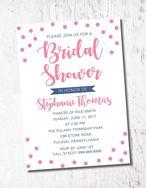 Bridal Shower Invitation Sprinkle Dots Pink Navy